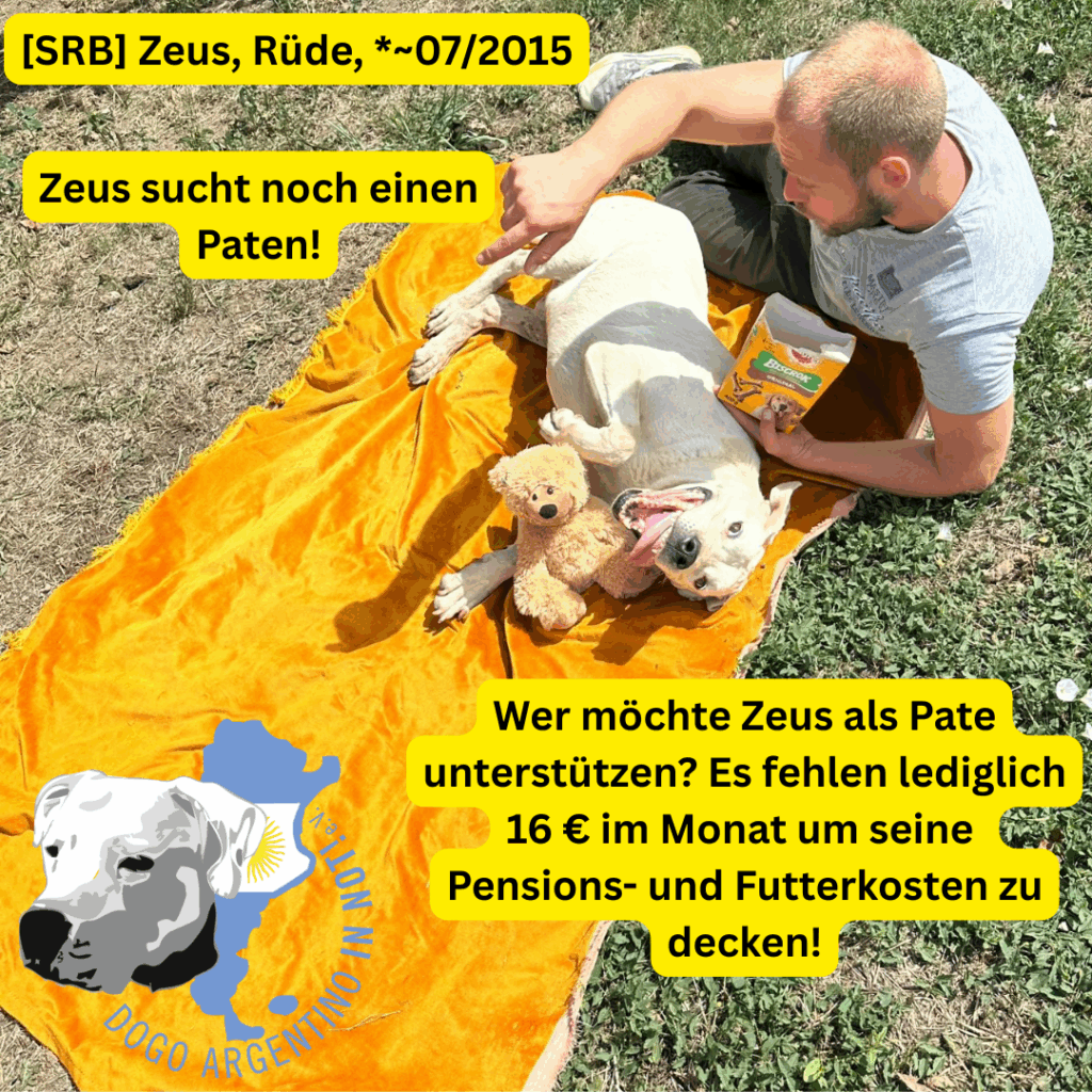 Zeus Futter wird weiterhin von seiner Patin Sis finanziert! Danke Dir!